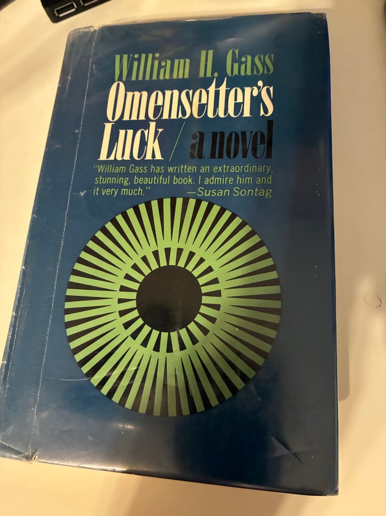 William H. Gass is often regarded as one of the pioneers of American postmodern literature, alongside Thomas Pynchon, Robert Coover, and William Gaddis, among others. Omensetter’s Luck was Gass’s first novel, and the manuscript was stolen from his desk, so he re-wrote the entire thing from memory.